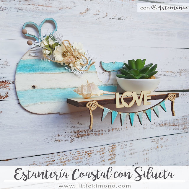 Buenos días Crafters!Seguimos con la decoración estilo coastal, esta vez con una estantería muy fácil de montar y con una delicada brisa marina^^ Para ello contaremos con la ayuda de Artemanía y una de sus siluetas precortadas de Rayher, en este caso la que tiene forma de "Ballena", las medidas: 26 x 16.5 x 0.4 cm
