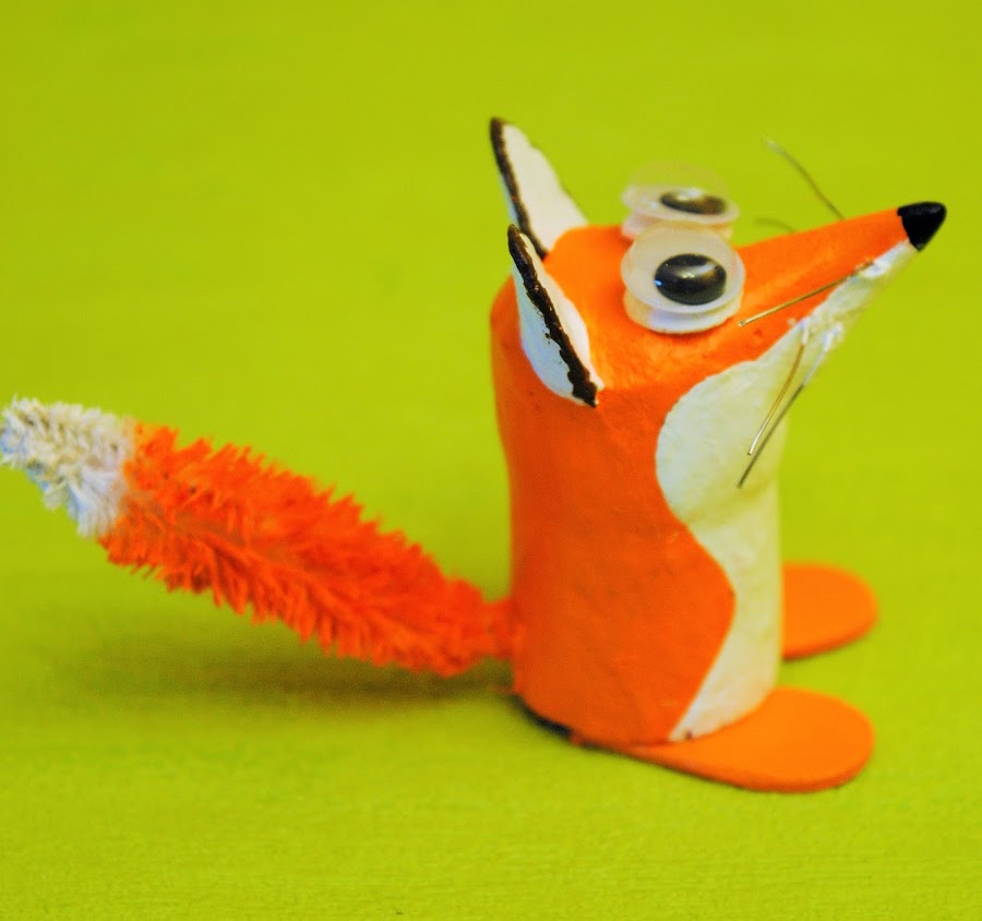 Un zorro. Un tapón de cava como cuerpo. Un trozo de un tapón de vino como hocico. Dos trozos del mismo tapón de vino, recortados en oblicuo, como orejas. Un palito de madera, de los de helado, como pies. Tres escobillones o limpiapipas, retorcidos a la vez, como cola. Alambre y ojos móviles. Pinturas acrílicas y silicona caliente. Este zorro.
