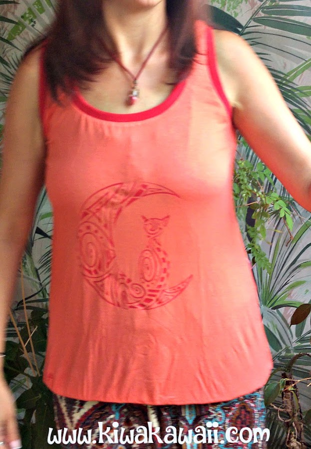 Como el dibujo era tan completito, pensé en poner el vinilo rojo, así sobre la tela coral, no destaca en exceso, queda bonito sin ser demasiado llamativo.