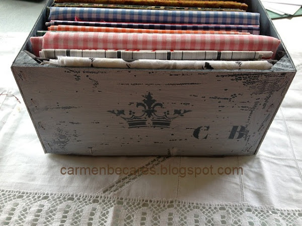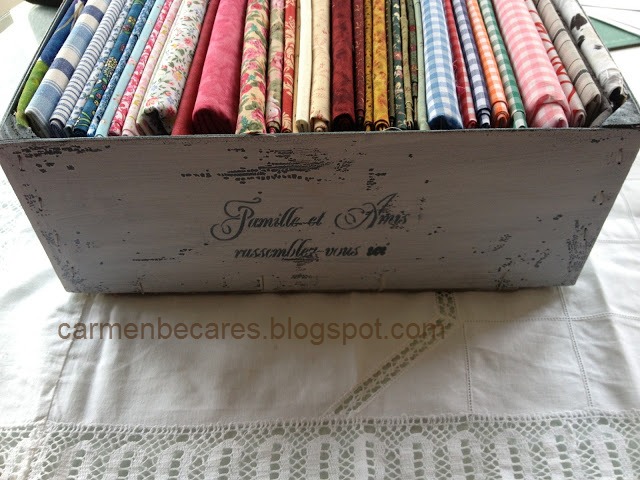 Este fin de semana he redecorado una caja de fruta para guardar mis telitas de patchwork,