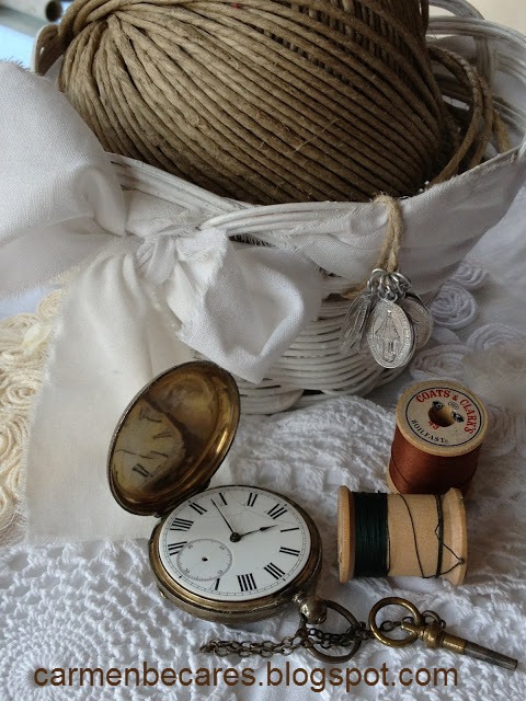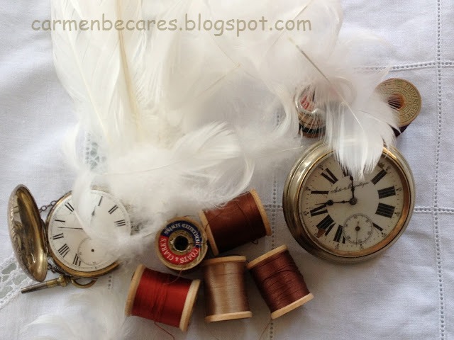 un ovillo de cuerda para atar muelles de tapicería, un reloj sin cristal y que por supuesto no funciona.....