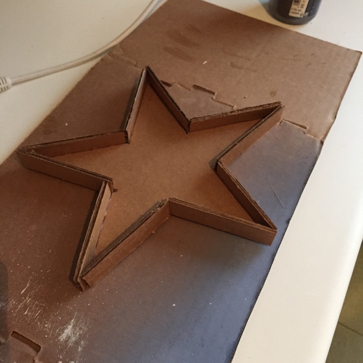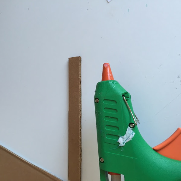 Luego cortamos segmentos de cartón del tamaño de los vértices y los vamos pegando con la pistola de silicona.
