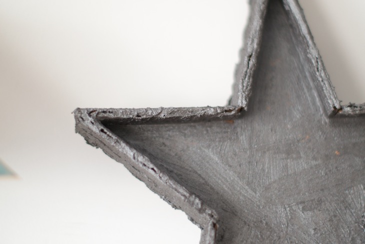 Para terminar aplicamos la pasta ferro, que dará ese acabado metálico, como de forja, a un simple cartón reciclado. Además nos ayuda a disimular los cantos y vértices, para que no se vea el cartón.