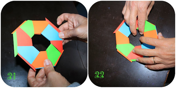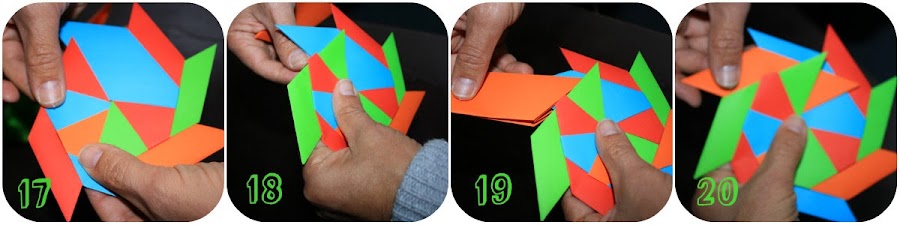 21. y 22. Cuando hemos colocado todas las figuras y nos quedará una estrella, si abrimos todas las figuras nos queda una figura como la de la imagen.