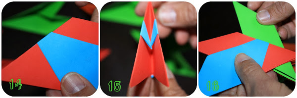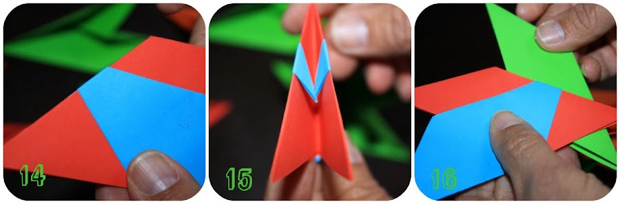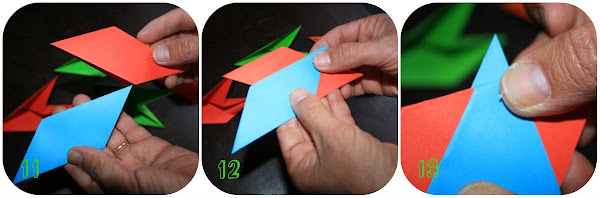 11. Metemos la figura roja, entre las dos solapitas azules.