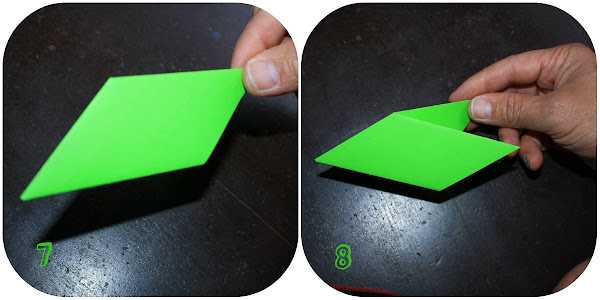 6. Cuando tenemos una especie de rombo, separamos la esquina que hemos doblado y lo metemos hacia y lo metemos hacia dentro.