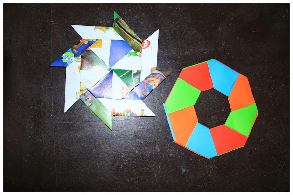 ¡Hola! El post de hoy viene muy colorido y puede servir como decorado para estas Navidades. Es una estrella de papiroflexia, se me ocurren muchas ideas para esta estrella, por ejemplo, colgarla con un hilo desde el techo.