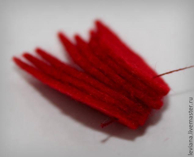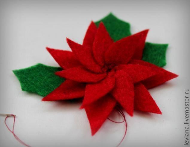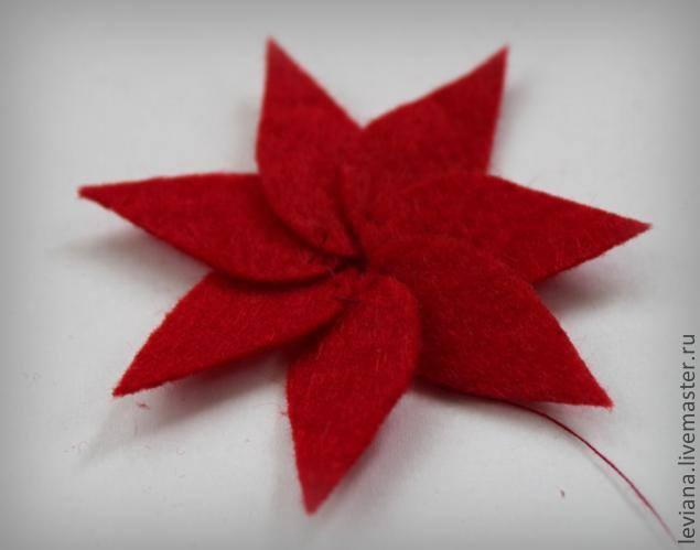 Juntemos los pétalos de la flor de Navidad con hilo y aguja.