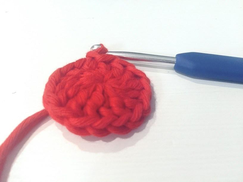 Vuelta 1: forma un círculo mágico con 14 puntos altos. Cierra el círculo con un punto raso.