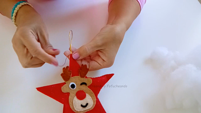 Para hacer la estrella he usado un Fieltro rojo con purpurina que me ha venío genial para esta manualidad navideña.