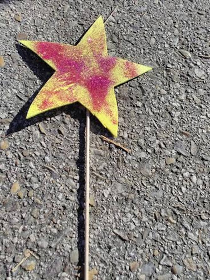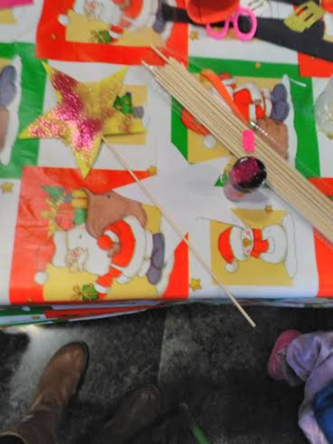 Se pone pegamento encima en la estrella y sobre éste, echaremos purpurina para que quede fijada.