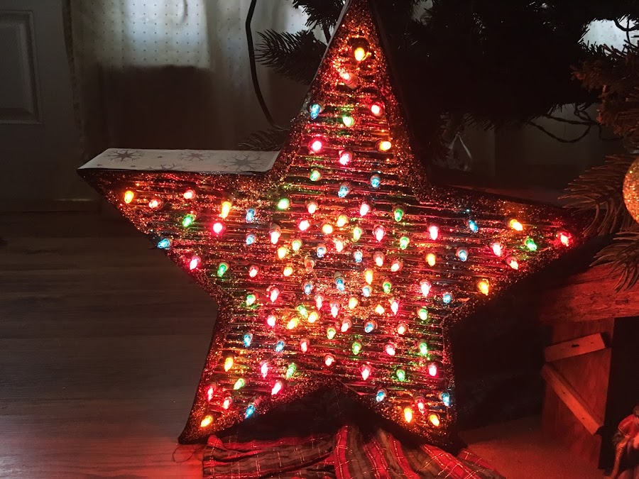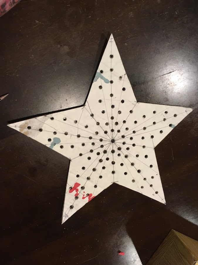 Cuenta cuantas lamparitas tiene tu luces de Navidad y con algo punzante como un lápiz haz pequeños orificios en una de las estrellas para pasar las luces.