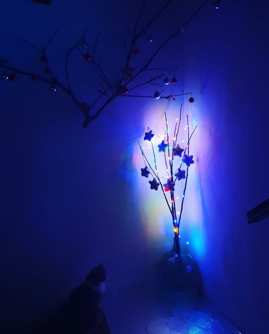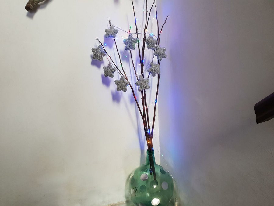 Quedan muy bonitas en cualquier rincón de la casa. Yo las he colocado en un rincón con 4 palos he puesto luces y luego la guirnalda de estrellas.