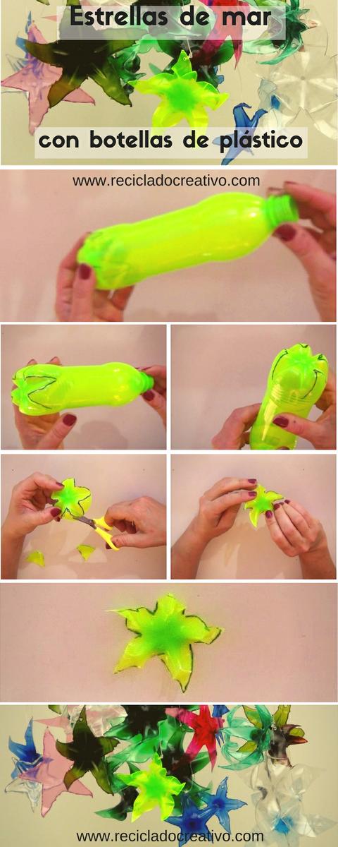 Cualquier color, forma o plástico puede ser útil. Si la base no tiene forma, podemos hacer la estrella con el cuerpo de la botella.