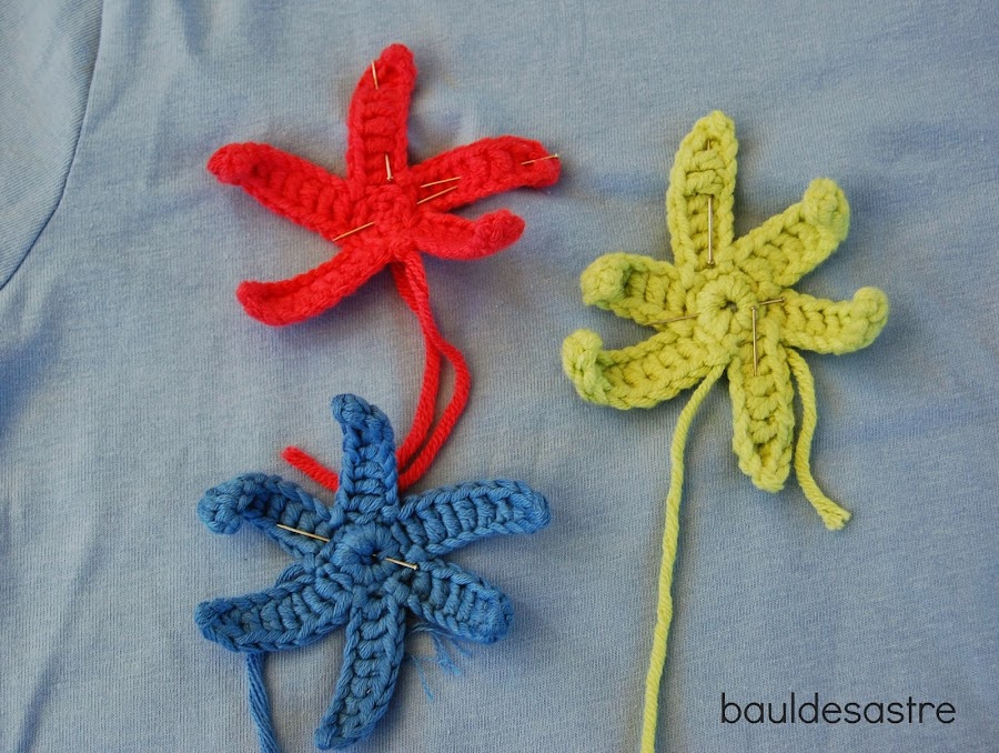 Hice tres, cada una en un color, utilizando la lana para amigurumi de Katia.