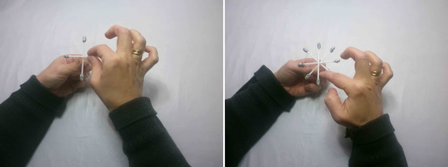 Después hay que pegar los bastoncitos con silicona caliente para formar la estrella.