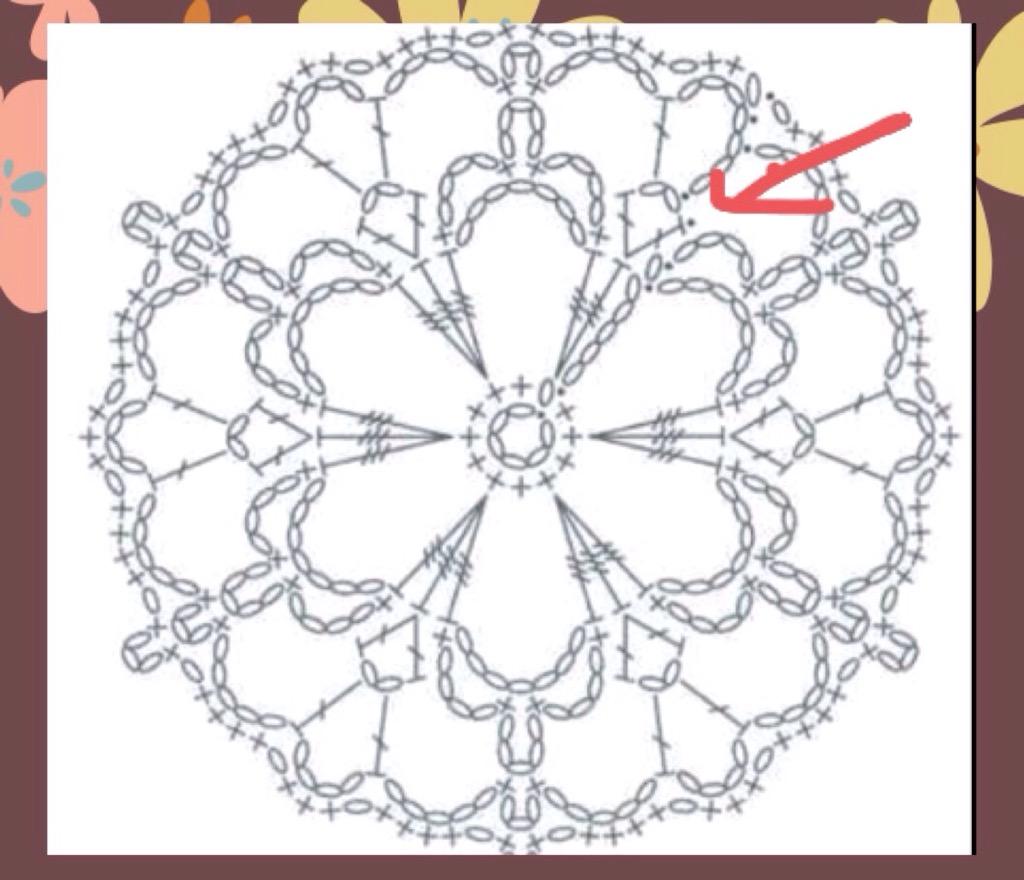 El siguiente patrón es el que he utilizado para la estrella. Con el hilo plateado he hecho hasta la señal en rojo.
