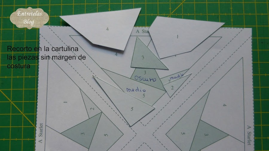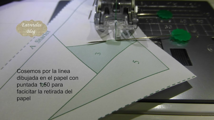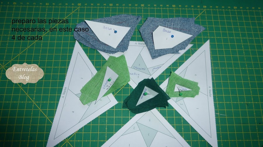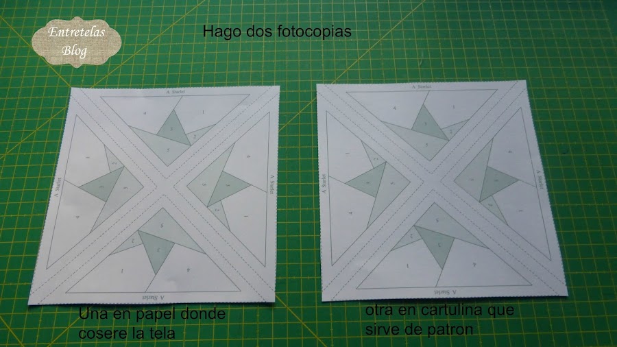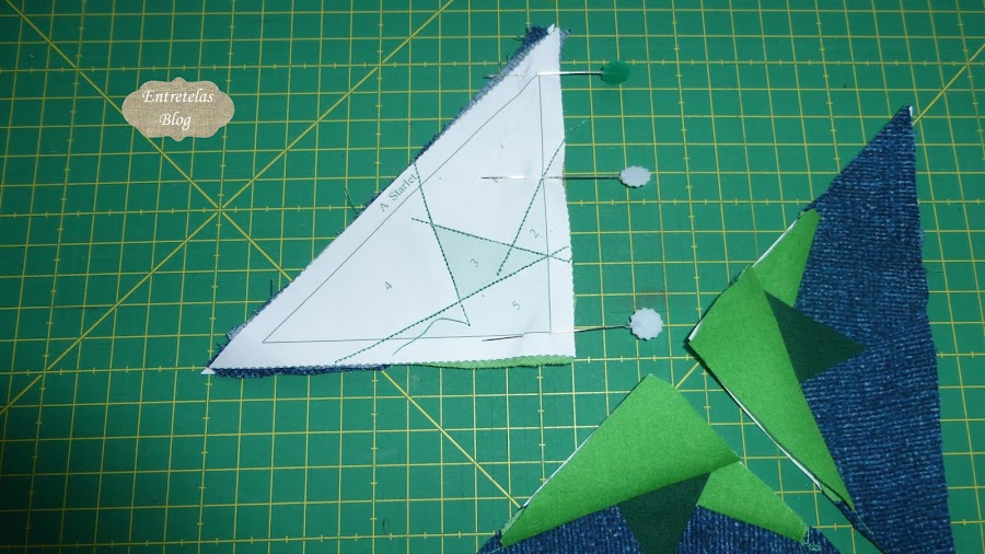 Estoy entusiasmada, al final os pongo un paso a paso de como estoy haciendo la técnica del paper piecing por si os interesa. No se si es muy ortodoxa pero si ahorra mucha tela y a mi me va genial