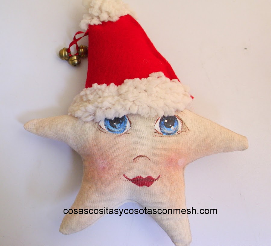 Paso a paso :Paso 1:Dibuje una estrella navideña en un papel y así saque el molde.Ahora la pasare a mi tela (poner la tela doblada por la mitad ,para que así salgan las 2 piezas que luego coseré a mano o a máquina.