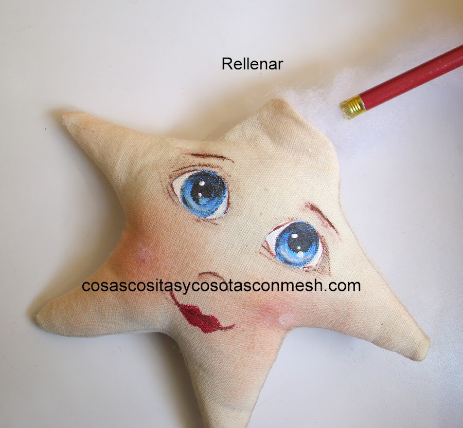 Paso9:Voltear la tela y rellenar con guata o delcrón por esa abertura que dejamos antes,con un lápiz iré metiendo el relleno de a poco ,ya que el adorno que estoy haciendo es pequeño.