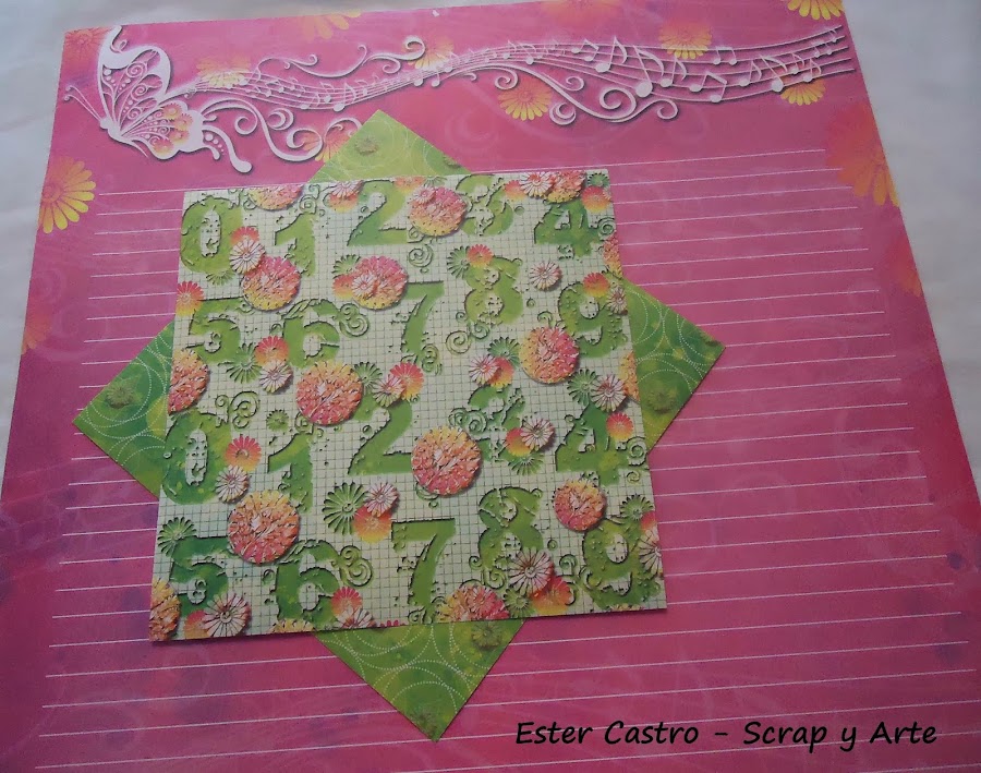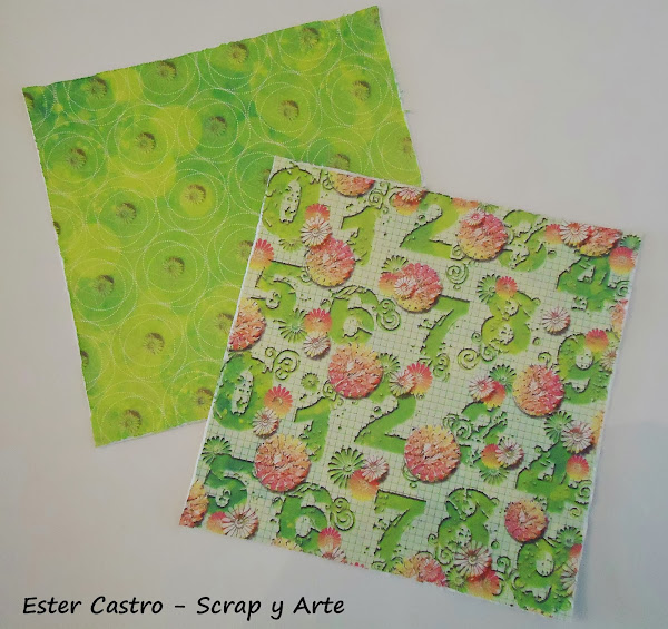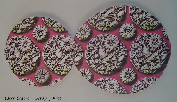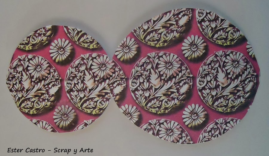 Para realizar el Mat (alfombrita) eleji dos diseños de mini láminas a las cuales les desgastamos con la tijera los lados
