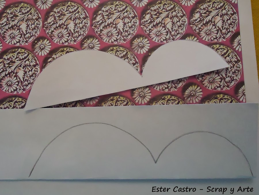 Doblamos el papel con el diseño que elejimos por la mitad y marcamos el molde