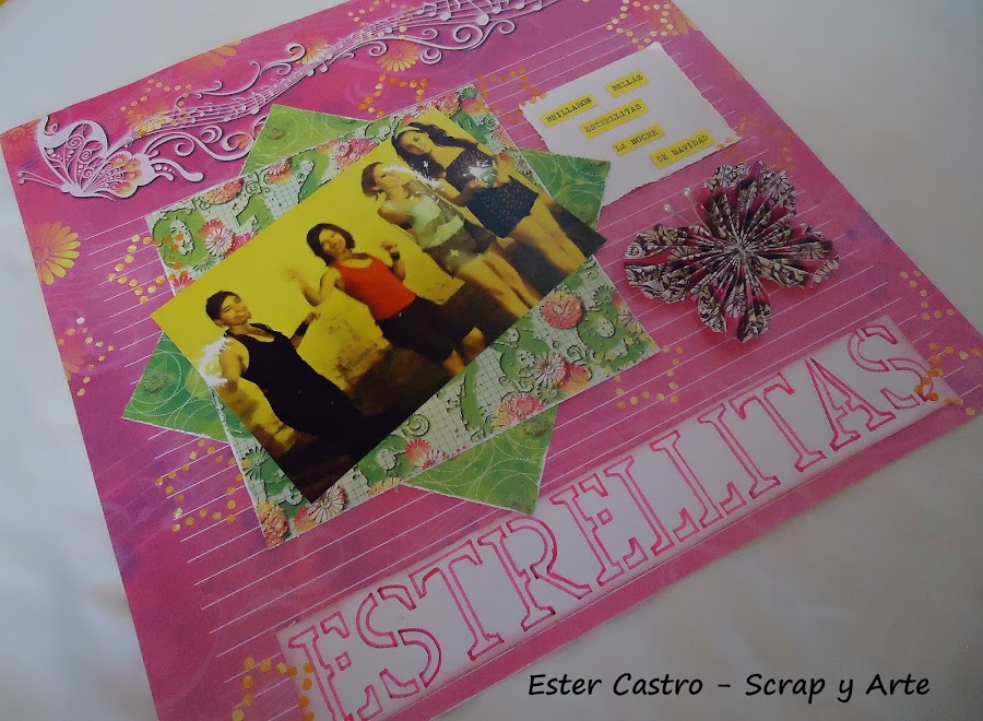 Presentando un nuevo trabajo como DT para CGS. este LO esta realizado con una foto que tome en Navidad de mis hijas y sobrinas donde se divierten con las estrellitas que jugaban cuando eran niñas.