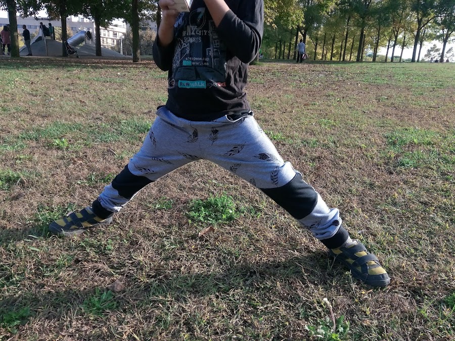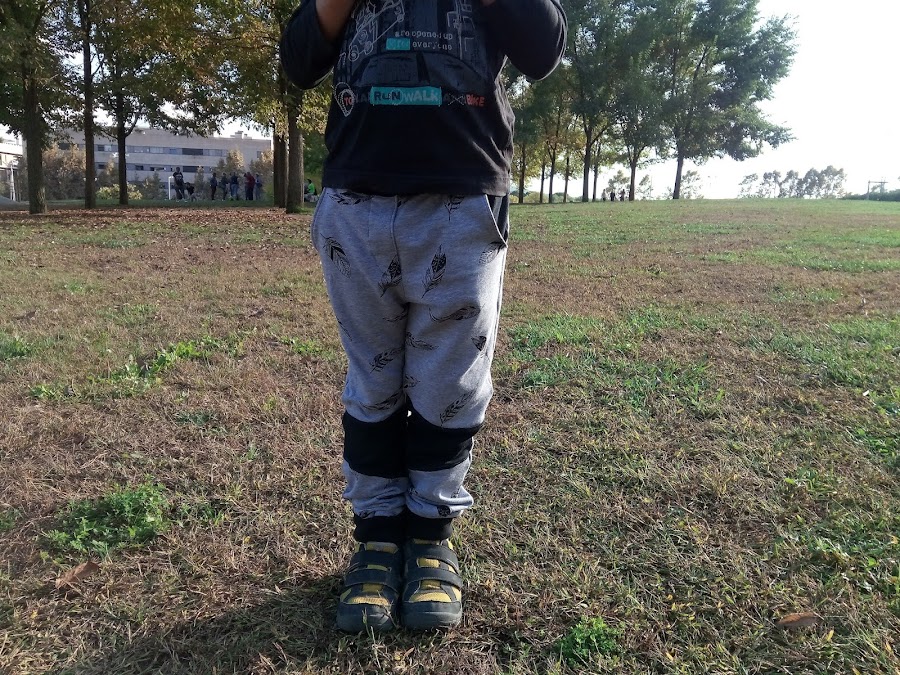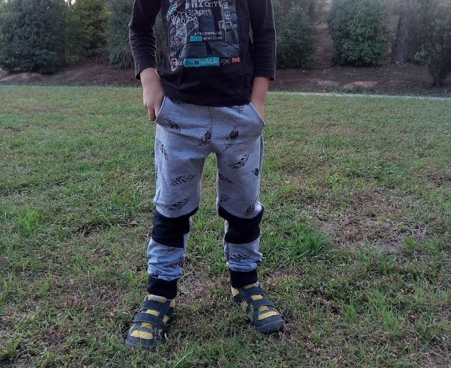 La parte trasera sencilla... Para las rodilleras utilicé una sudadera de verano que tenía por casa, la debería haber puesto doble... pero bueno. La combinación la eligió el peque, cinturilla y butxaques negres mama... A la orden!