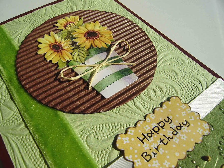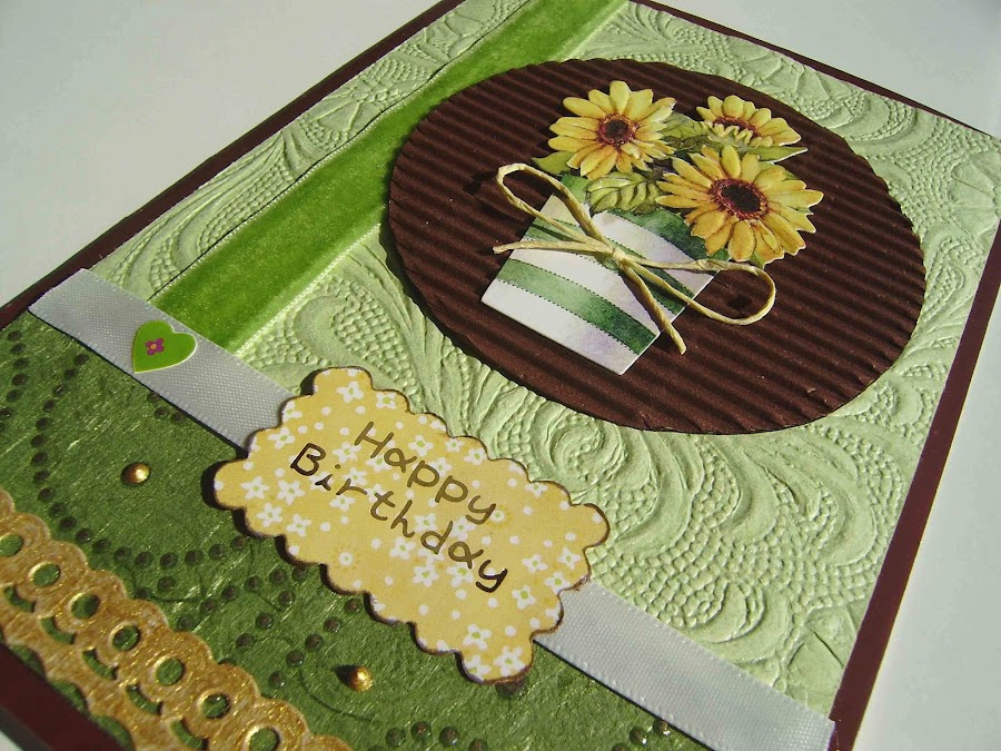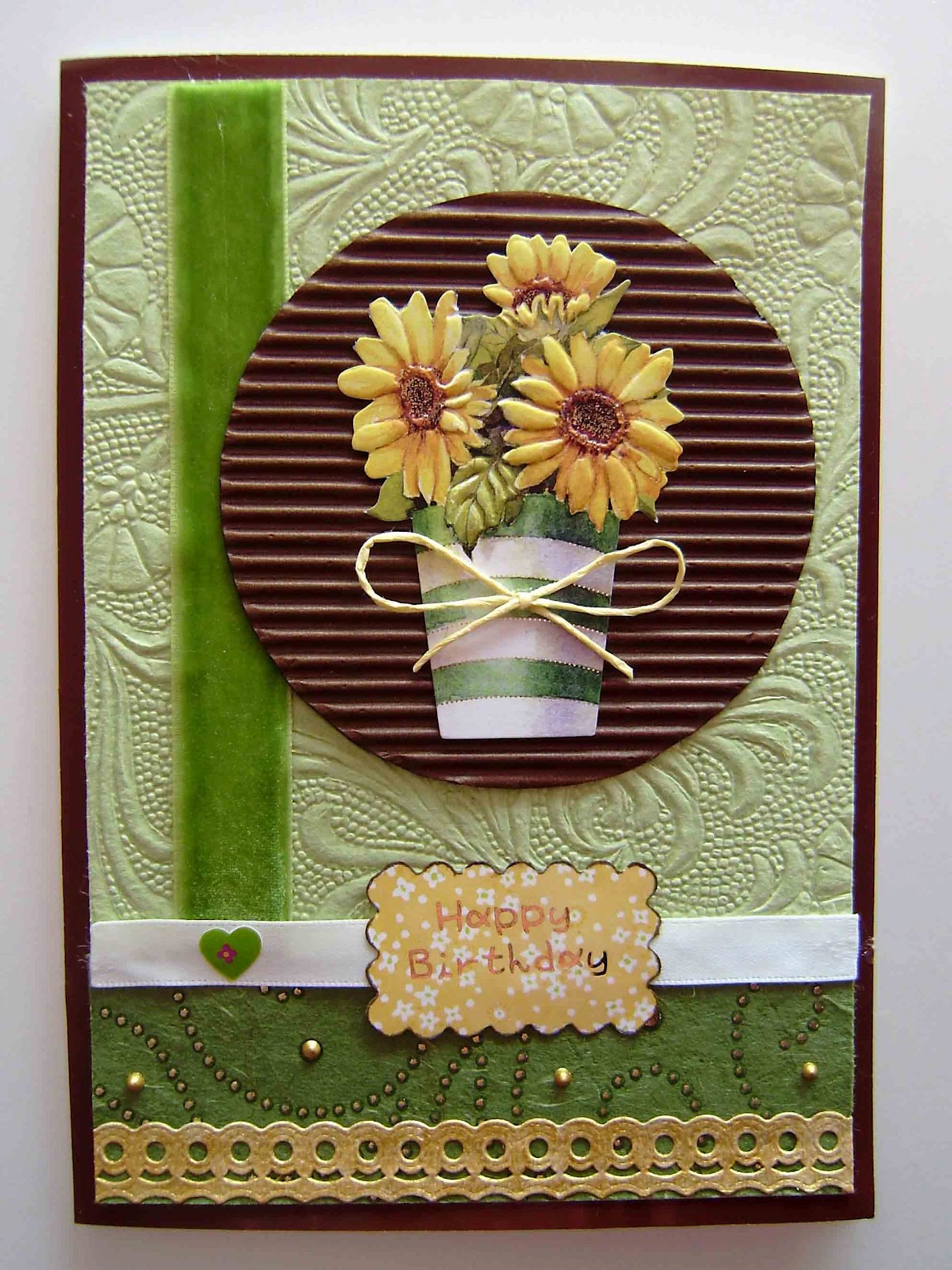 La tercera tarjeta me transmite mucha alegría y felicidad. Estos preciosos girasoles son tan adorables! Y la maceta a rallas le da un toque divertido a toda la composición :)