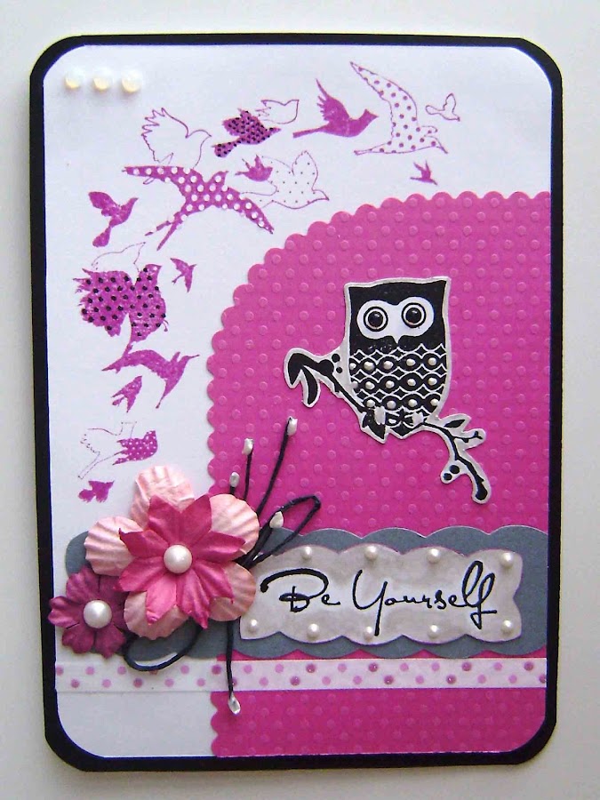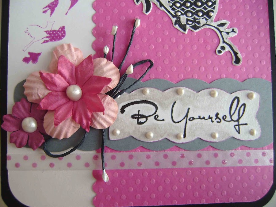 "Be? Yourself" es el téxto que escogí para esta tarjeta. Me gusta mucho la idea de "ser uno mismo como es". Creo que para ser feliz y vivir agusto consigo mismo es muy importante! Por mucho que uno se esfuerza por ser lo que no es o finge sentir lo que realmente no siente... no le convierte en la mejor persona. La autenticidad es lo que cuenta, ser fiel a si mismo y simplemente aceptarse!