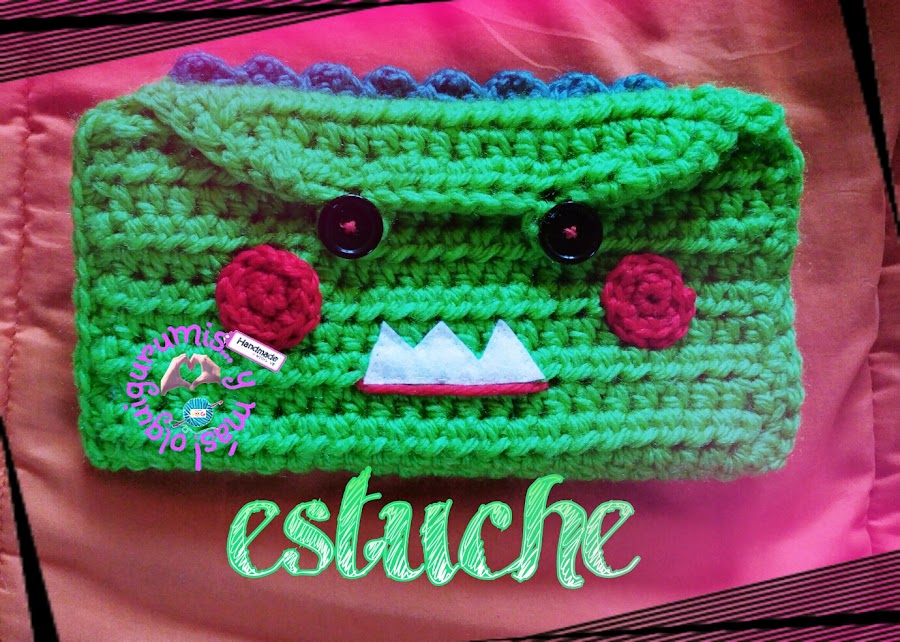 Un estuche tejido con forma de monstruito, para los rotus, pinturas... o lo que te apetezca