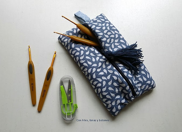 Para darle el toque especial al estuche le puse una borla en la cremallera, así es mucho más fácil de abrir y cerrar. Y además, es una buena forma de aprovechar los restos de hilos de otras labores. No se puede tirar nada.