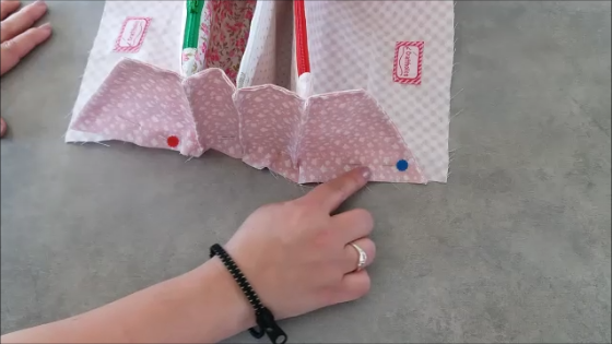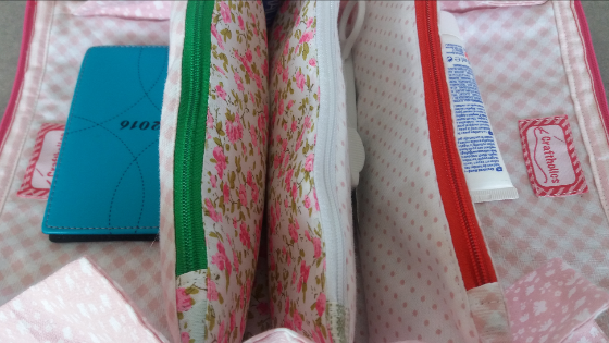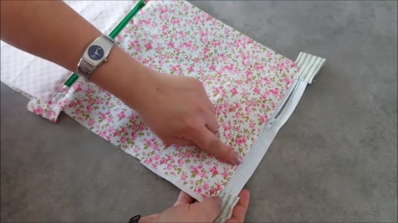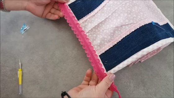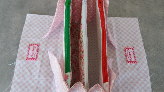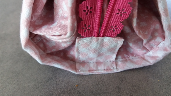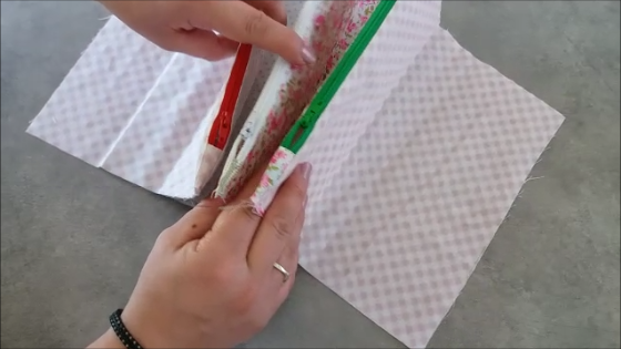 Una vez puesta la cremallera, vamos a unir los extremos al lateral del estuche central, de ésta manera: