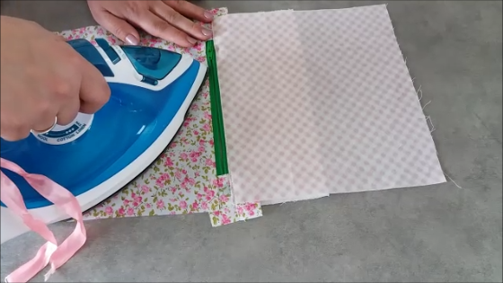 Primero ponemos entretela a las piezas de los forros para que queden con más cuerpo. Se pegan con la plancha caliente y sin vapor, poniendo la parte del pegamento de la entretela (el lado brillante) hacia el revés de la tela.