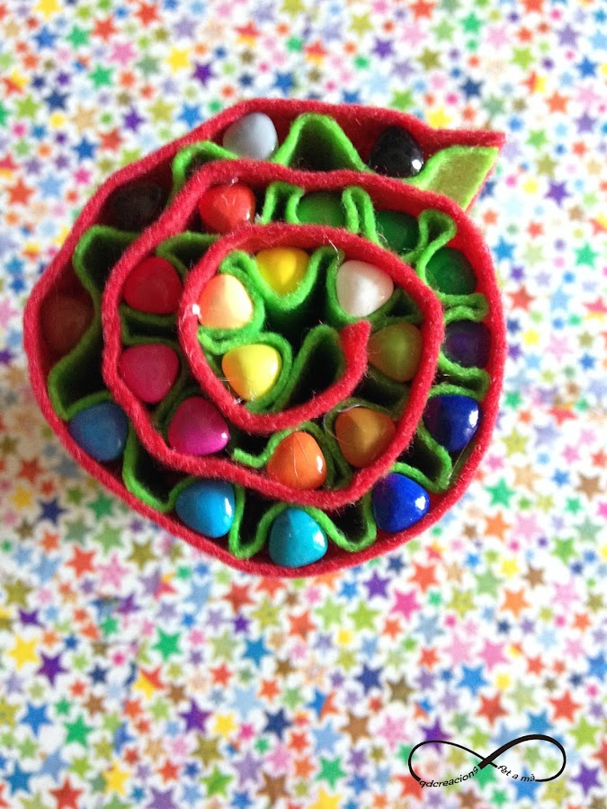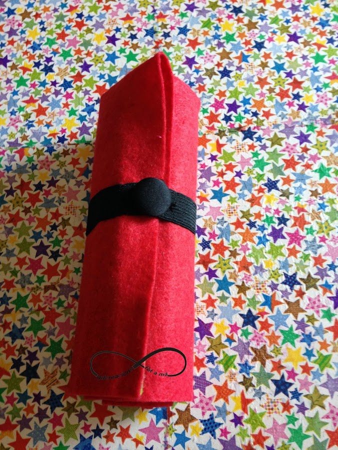 Y si te gusta pintar te traigo una idea genial para poner tus colores. A mi me regalaron un caja de colores ergonómicos y la caja era muy mona sí, pero cada vez que quería un color tenia que abrir la caja, secar el color y volver a meter y al revés, vaya royo, no? Así que pensé en hacerme un estuche con fieltro.