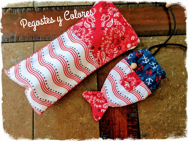 Decidí hacérmelos también y son perfectos para presentarlos hoy por muchas razones. Una que el estuche me gusto para usarlo para mis lentes de sol (Hoy es el Dia Internacional de los Lentes de Sol!) y la bolsita de pez es ideal para guardar las llaves y otras cosas cuando vaya al lago o a la playa.