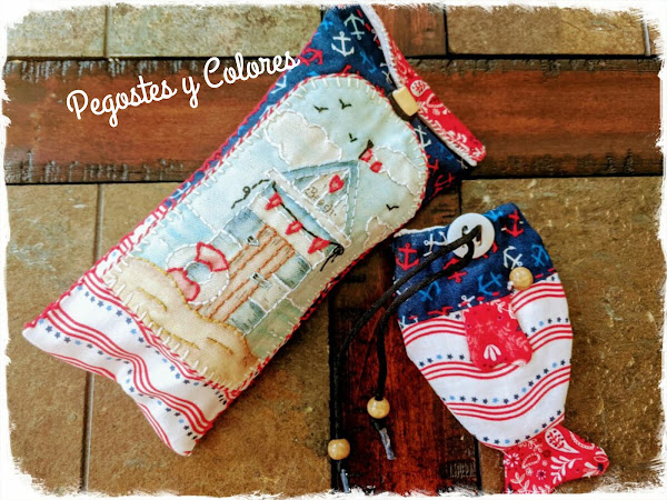 Hoy vengo con un proyecto muy bonito y especial. Honestamente ya tengo mucho tiempo planeandolo, buscando las telitas correctas y el tiempo tranquila para hacerlo. No les puedo dar el tutorial ni patrones, porque este es un trabajo que hizo Pilar Platas del blog Dulce Pilukas y que compartio en su taller del grupo de Facebook Dulce Pilukas Caprichos de Costura.Descubrí a Pilar gracias a Marta de Las manualidades de Marta, ella hizo una Casita Alfiletero de Pajaros de Pilar y solo verla me enamore perdidamente de ella, de hecho la estoy haciendo y espero terminarla pronto. Pero cuando le solicite a Pilar entrar en su grupo y vi los demás proyectos... ay ni les cuento. Vi tantas preciosidades que me volvía loquita y otro de los proyectos que vi fueron este estuche de caseta de playa y bolsa pez.