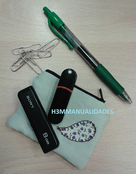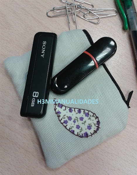 Esta vez se trata de unos vaqueros que ya quedaron pequeños a mi hijo, pero no sólo eso, además tenían alguna parte rota y ya no servían como tales. Así que dispuesta a dar nueva vida a esa tela vaquera de un color crema, me puse manos a la obra para hacerme un pequeño estuche para los pen-drives que suelo utilizar en el trabajo.