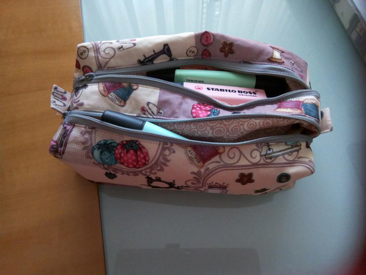 Se trata de un estuche con forma cuadrada y dos compartimentos que está pensado para meter todos los rotuladores fluorescentes que no me caben en ningún sitio.