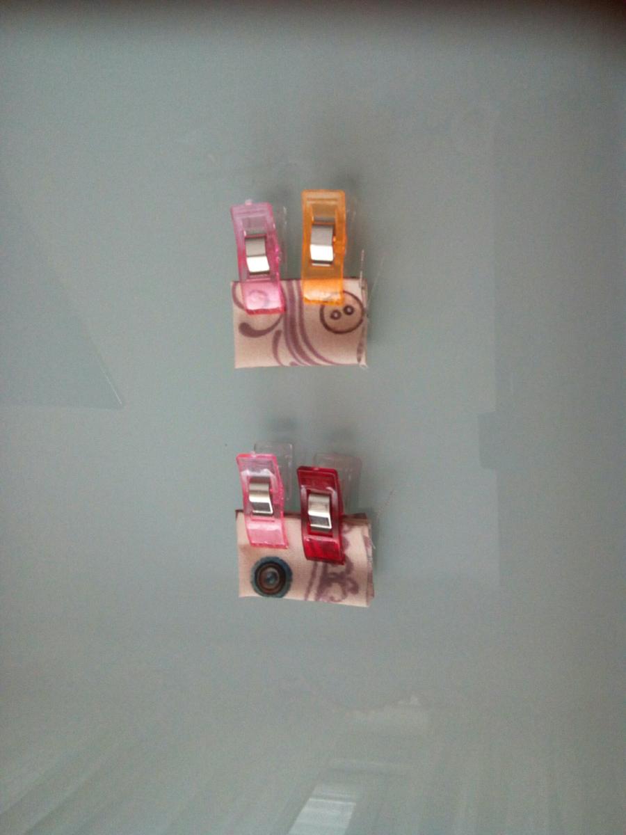Ahora unimos el centro de la tela principal con el centro de la pieza central.