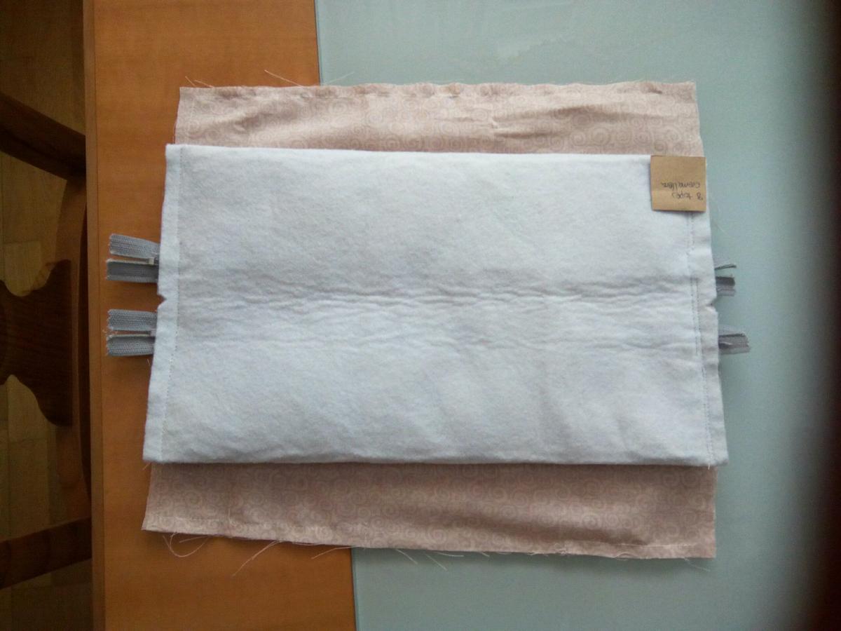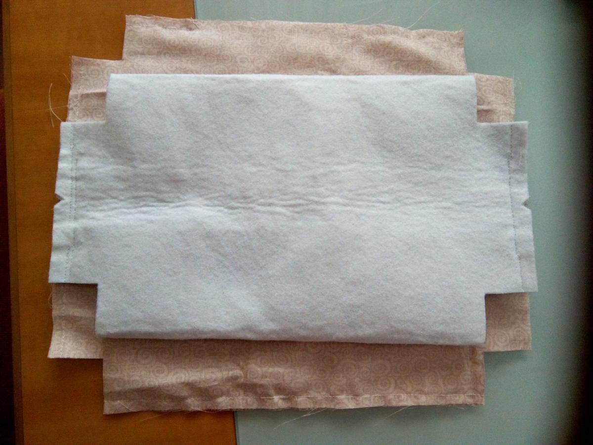 Pegamos la guata termoadhesiva a las dos piezas de tela exterior.