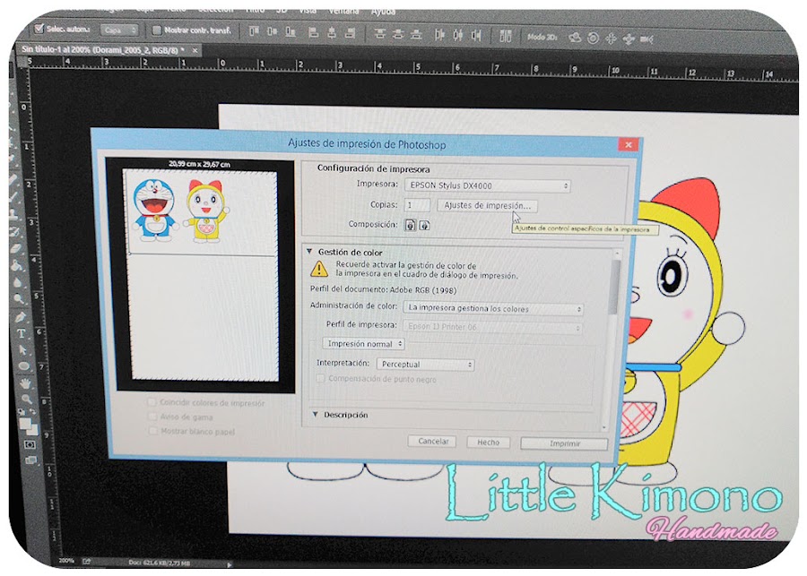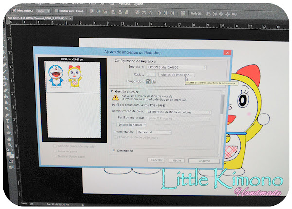 8. Imprimimos en papel transfer las imágenes, en este caso de Doraemon y Dorami ^^