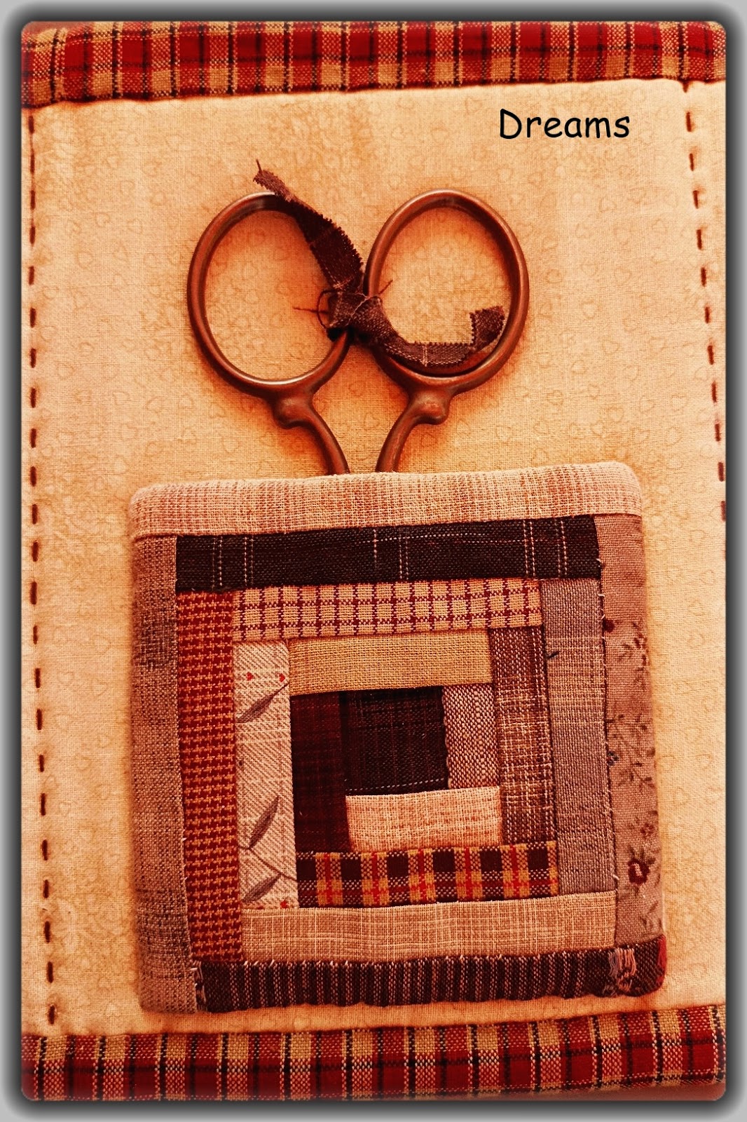 Un bolsillito creado con un Log Cabin de 10 cm alberga dentro la tijera.