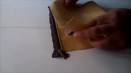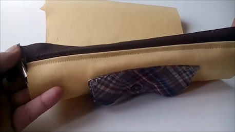 Ya tenemos cosida la cremallera; ahora vamos a terminar de cerrar el estuche. Con la cremallera abierta a la mitad, damos la vuelta y coseremos del revés, por los laterales que nos quedan abiertos, pero antes, metemos la "orejita" con el tirador hacia adentro y a la altura que quieras, así: