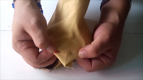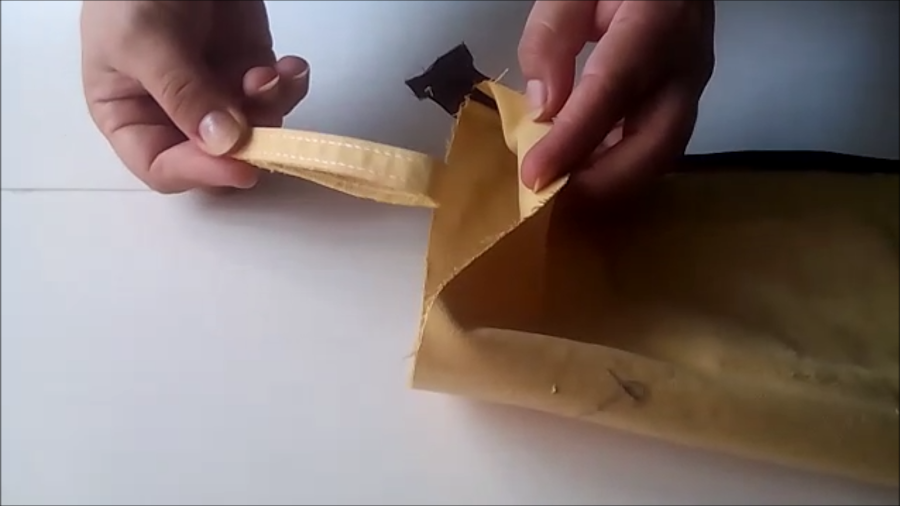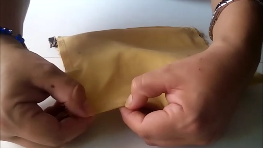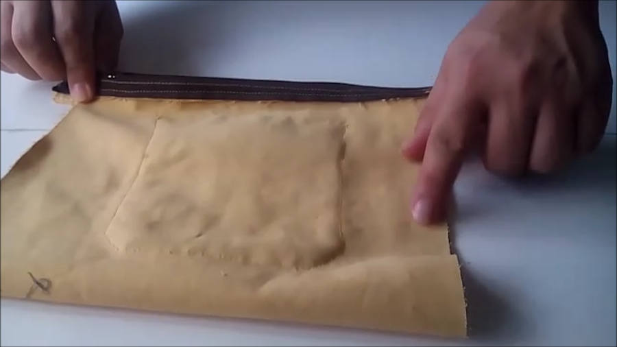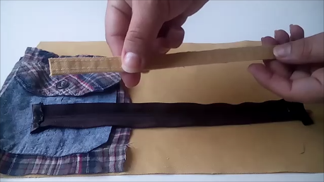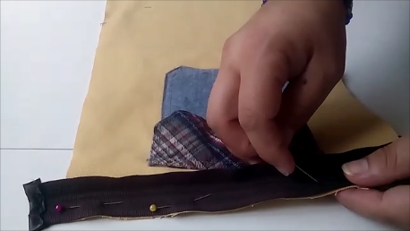 Ahora tomamos la tela por el otro extremo y la llevamos a la cremallera, de esta forma: