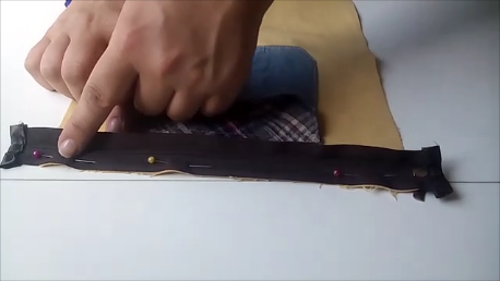 Una vez cosido es momento de poner la cremallera, que se coloca con la parte por donde abre hacia abajo, es decir, enfrentamos cara buena de la tela con la cara buena de la cremallera, aseguramos con alfileres y cosemos