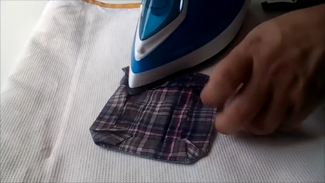 Lo primero será pasar la plancha por el bolsillo, haciendo un dobladillo por la parte trasera para que nos resulte más fácil coserlo a la tela.