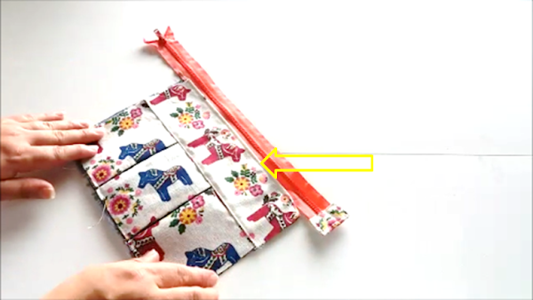 Luego coseremos la pieza que completa la parte frontal del estuche.