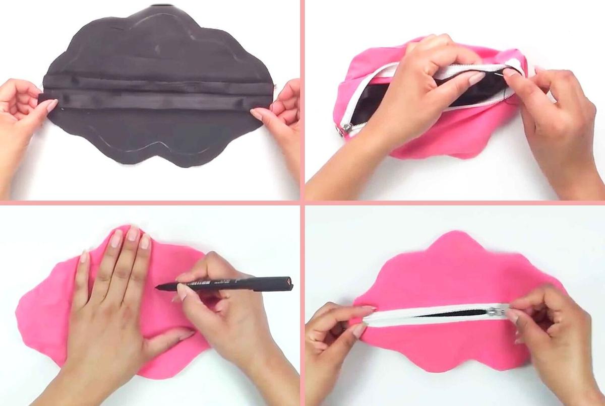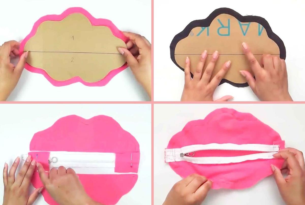 Coloca un trozo de tela a cada lado de la cremallera y cóselos.
