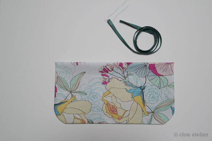 Preparamos el cordón que nos servirá para atar el estuche porta brochas. Para ello, hacemos una especie de bies, doblando hacia dentro los extremos (4 mm) a lo largo ayudándonos de la plancha. Y a su vez, volvemos a doblar por la mitad, obteniendo así una anchura de 0.8 cm. A continuación pasamos un pespunte con la máquina de coser por todo el largo.